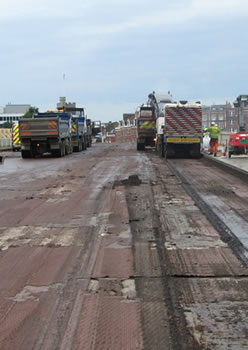 The removal of the tarmac road surface was expected to continue over the whole weekend but was actually completed on Saturday morning.