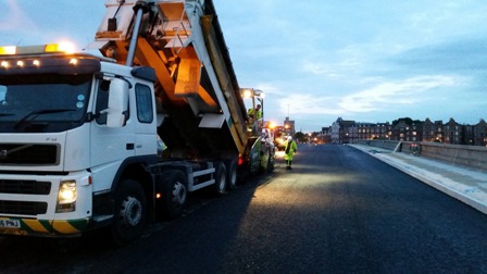 FM Conway, who are carrying out the £1.5million of repairs to the bridge, laid more than 700 tonnes of asphalt on Friday – laying a really strong and solid base to the bridge’s road surface – and fully prepared for additional re-surfacing work next month.