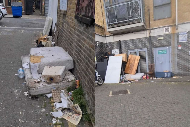 She was then offered another property, this time a bungalow in Southall. Ms Kovacs took photos showing huge piles of rubbish stacked up in the courtyard in front of her windows.