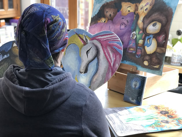 Melanie pictured with her art. Picture: Ged Cann