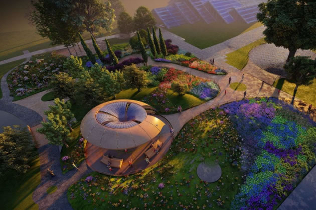 There would be a circular route through the four main zones of the garden, which would be based on the themes of the carbon cycle, carbon and climate change, living with climate change and nature-based solutions. Plants in each zone would reflect the different themes, including a dry garden with drought-tolerant plants and trees, a wildflower meadow of native species and a flower meadow. A pavilion would be built in the centre of the garden using sustainable materials to attract visitors.