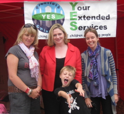 Mary Macleod MP met a team from Chiswick and Brentford Your Extended Services (YES), who were on hand to give information on Hounslow Council’s Extended Services scheme (past events have included Yoga for exam-age children, paediatric first aid courses and a Healthy Cookery Club).  Mary met Liz Gers (Parent Support Adviser) (left) and Claire Collison (Co-ordinator for Brentford and Chiswick) (right) of Brentford and Chiswick YES, with Liz’s son Tom.