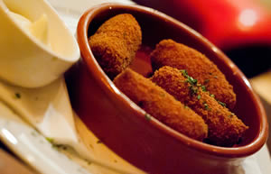 We ordered a selection of tapas to start (part of their 4 dishes for £17.50 deal), including the ham and cheese croquettes, honey soaked fried chorizo, tetilla and manchego cheese with quince paste and calamari with lemon aioli. It's very easy to get croquettes wrong, which seems ironic when they're so very simple to make, but happily The Black Lion's were delightfully crunchy on the outside with soft, fluffy, cheesy interiors and almost better than some of the best I've had in Spain. The honey soaked fried chorizo also deserves a mention as it was by far my favourite way to eat fried chorizo, hitting all the right taste buds and with a wonderful umami flavour. Despite the fact that these items didn't seem to 'fit' with the rest of the menu, the kitchen made it their own and much better than some of the other well-known tapas joints in London. If this is fusion at its best then I'll take it.