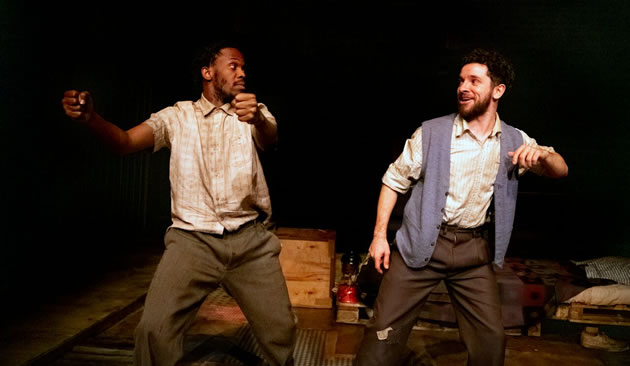 Today's audiences don't have that immediate context in which to view the characters and it therefore takes a while to understand what we are seeing. Which is a shame because it slows the play. At face value there is a dirt-poor white man, Morrie, obviously educated, but hiding in a shanty town hut (well captured by designer Basia Bińkowska), and waiting each day for an exhausted, sore-footed black man, Zach, to return home for Morrie's foot rubs, food, bible readings and sleep. Morrie shares with him his dreams of a farm just made for two; the disinterested Zach's mind is on his first, rather violent, sexual encounter with a seemingly unwilling girl called Connie.