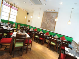 One review of the restaurant took issue with the menu for being over complicated. The dishes are elaborately explained and information about their regional provenance could be confusing. But I found it interesting to read about the marketplaces , from the Tokri of Chandni Chowk in Delhi, said to be the birthplace of ' tikka masala' , to Tawa of Chowrenghee Lane in Calcutta . If I cannot travel to Chowpatty, the famous Mumbai beach, or Aminabad in Old Lucknow (famous for kebabs) at least I can imagine the exotic locations while sitting in rainy west London.