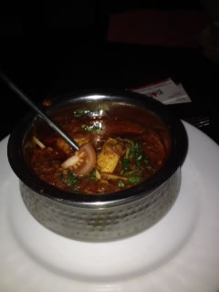 The Lamb Biriyani( £12.50) was more richly flavoured than the frequently dry offering of some restaurants. It was described as hunks of marinated lamb in a house recipe of ground spices, rose water, saffron, brown onions and cooked with aromatic Basmati rice. It was served with Salan (sesame, coconut, peanut and yogurt gravy).Verdict- very good.