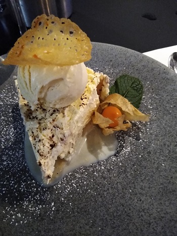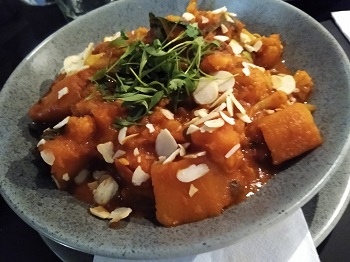 My Butternut and Cauliflower curry (£8.50) with rice and optional flatbread and tzatziki (£1.50) was delicious. Creamy and satisfying - not too spicy,but full of flavour. It was more filling than I anticipated tho and because we were keen to try the desserts I had to concede defeat before it was all finished...