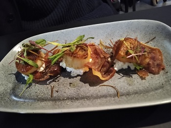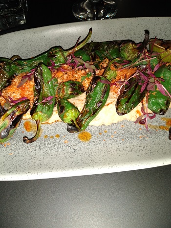 Small plates were starters and although I thought priced a tad on the high side (£9) it was good to see scallops on the menu - not many places do them. These were seared with prosciutto and lemon butter but I was persuaded to opt for the recommended chargrilled padron pepper on a lovely creamy hummus base, this was light and tasty, and washed down with some deliciously refreshing Vinho Verde, once again recommended by the knowledgeable staff.