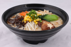 Taking the same tack with the mains we followed house recommendation for the Spicy Beef Japanese Ramen in soup (seaweed, carrot, sweetcorn, bamboo shoots, broccoli, £6.85); at around £7 apiece, one of the sizzling platters, available with various meats, and chicken in black bean sauce (my personal ‘benchmark’ dish, which I use as a gauge of any restaurant chef’s artistry); a house Special Noodle with beef, chicken, pork, prawn at £6.80 and mushroom fried rice that was completely greedy and gratuitous but we couldn’t resist.
