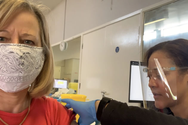 Ruth Cadbury getting her booster jab last month