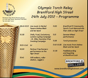 Brentford High Street Steering Group has organised a carnival-themed event before the Olympic Torch procession on Brentford High Street. They also plan to organise live music in Market Place with stalls selling art and crafts, food and drink.