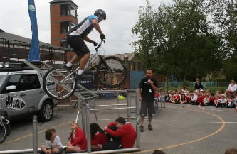 Youngsters at a Wimbledon primary school enjoyed a visit from mountain bike stunt team Making a Difference (MAD).
