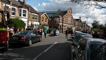 Wimbledon Leisure Centre had to be evacuated and surrounding roads closed off after two chemicals were spilled today (April 30).