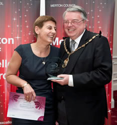 Christine Parsloe accepting her Outstanding Employee of the Year award at the Merton Council Staff Excellence Awards 2013
