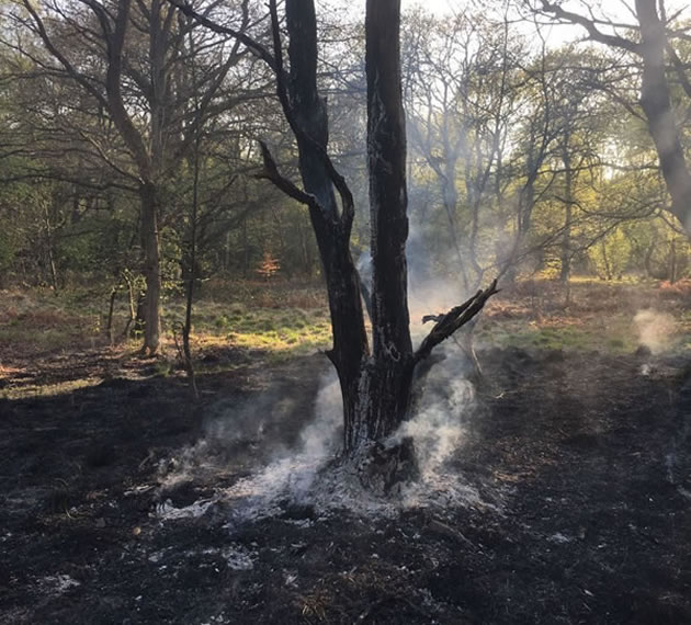The rangers Tweeted about the fire on @WimbledonCommon: “Evidence indicates it was started deliberately. Police informed. If you see any sign of fire/smoke/BBQ or anyone behaving suspiciously please call us 020 8788 7655.
