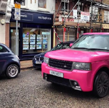 Bright pink Range Rover in the High Street