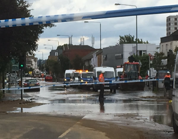 A burst water main caused a major flood on the main Kingston Road through South Wimbledon on Sunday (July 3).