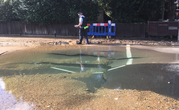 "We've re-routed water from other parts of the network while we fix the burst and most customers within KT3/6 and 20 should be in supply. These customers may notice a dip in pressure during peak draw.