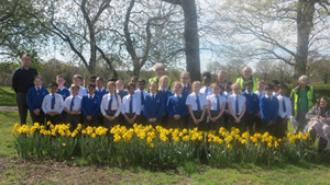 Liz Sherwood, in the centre at the back, with school children in Morden Park