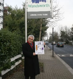 Leader of the Council, Councillor Stephen Alambritis (pictured right at the borough boundary in Wimbledon Park) said: "We are very disappointed with the amount we are due to receive from the Department for Health. As the council will be taking on more responsibility, the awarding of these grants does not reflect the additional work we will be taking on."