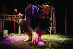 Based on Alex Higlett's picture book, Egg and Bird, Egg is played out on a beautifully rustic set constructed from twigs, feathers and shell.