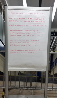 South West Trains said in an earlier statement: “It will be necessary to implement a speed limit of 5mph over the broken rail in order to keep trains safe, and this is expected to cause significant disruption to services through platform 5 this morning.