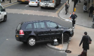 After colliding with the bollard, the woman driver in the most recent accident had to be cut out of her car because she was suffering from neck injuries. Her vehicle was said to have come close to tipping over on its roof. Fortunately her 11-year-old daughter was unharmed.