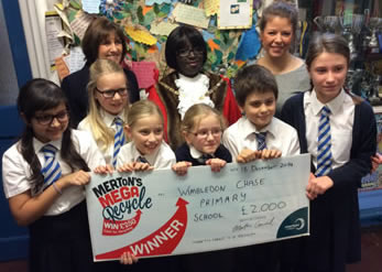 Wimbledon Chase Primary School have been presented with a £2,000 cheque after winning the third prize award during Merton's Mega Recycle campaign.