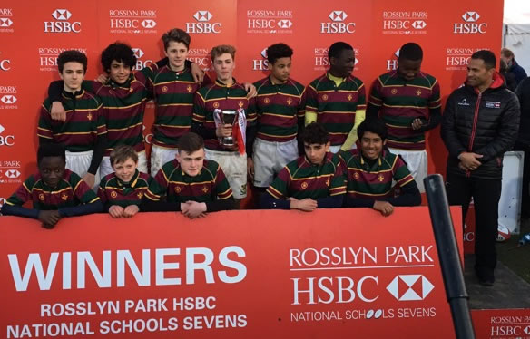 Wimbledon College backed up last year’s triumph at the Rosslyn Park HSBC National School 7s at U13 level by winning this year’s U14 Cup.