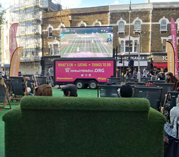Love Wimbledon’s Big Screen on The Piazza will be back when the tennis starts at the All England Club on July 3.