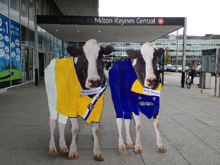 Dave said: "I was looking for creative and non violent ways of making a protest and a small group of us got together and created a couple of life-sized cardboard cows. They are painted with an AFCW kit as a tongue poke to the concrete cows in Milton Keynes and will be auctioned after the 'game' for charity. We hope it will bring a few smiles."