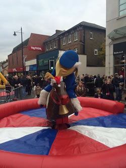 Children's rides including a carousel, rodeo reindeer and a Christmas pudding bouncy castle. There was also stilt-walking fairies, dancing penguins, singing crackers, a snow machine and a 9m-high Father Christmas.