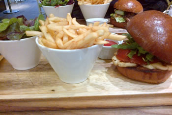 Burgers weren't the only food on offer when we visited, as the evening menu included risotto, fishcakes and steak. However, almost everyone in there seemed to be tucking into a burger - tempted by the £12.50 deal, including burger, chips, salad and half a pint. So we decided to join in with them, and while my friend opted for a duck burger, I picked the intriguing-sounding halloumi burger.